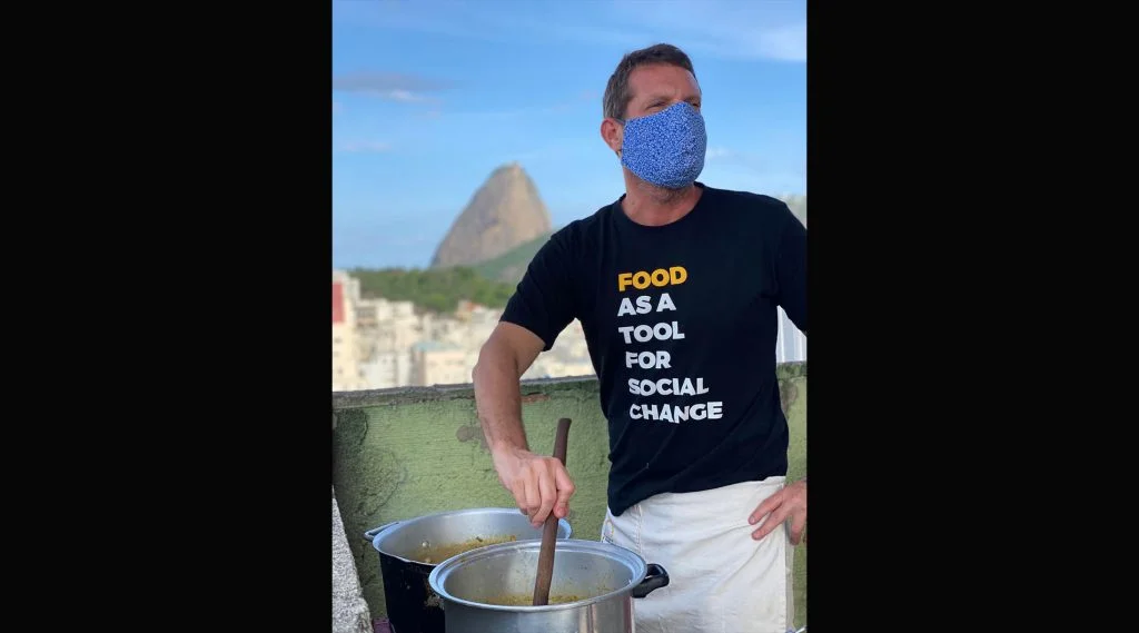דויד הרץ מבשל באחד ממטבחי הסולידריות שלו, בריו דה ז'נרו, אוקטובר 2019 (באדיבות הרץ)